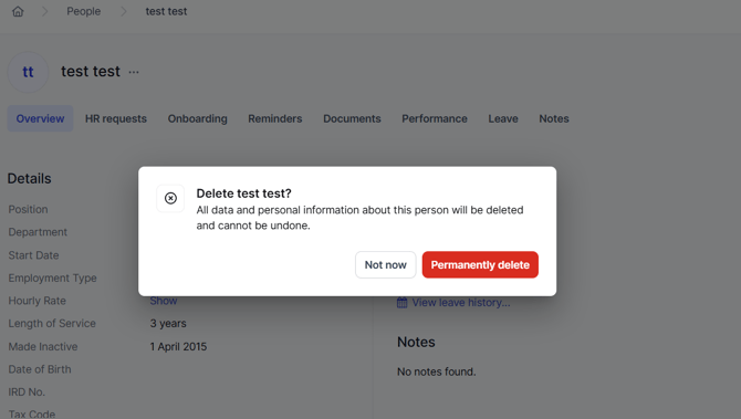 If you need any help with deleting someone or have any questions, please email help@myhr.works or contact us via the chat bubble.