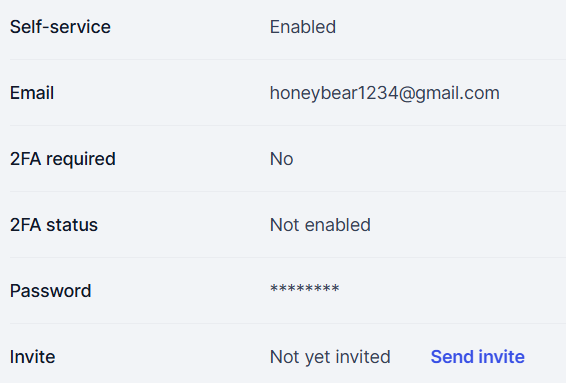 - Under Login details, scroll down to Invite and select Send invite.