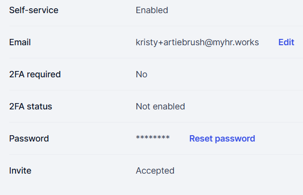 Self service has been enabled however they have not been invited. There may be a pending employment agreement/contract for you to sign. Otherwise, you can manually send an invitation by selecting Send Invite. |