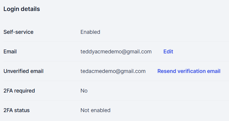 Has self service enabled They have signed in previously with the first email address, and have initiated a change to email however have not verified the change |