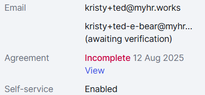 Has not yet been invited to MyHR There is a pending agreement/contract |